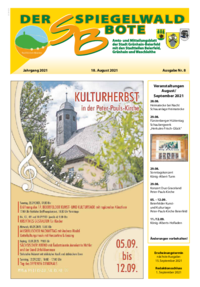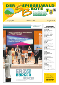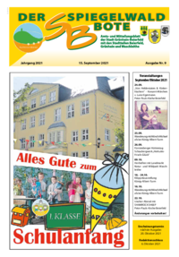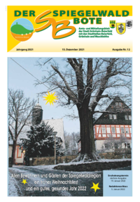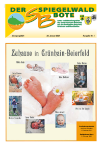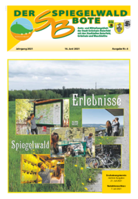 Der Spiegelwaldbote für öffentliche Bekanntmachungen und Mitteilungen der Stadt Grünhain-Beierfeld erscheint monatlich. Unternehmen, Institutionen und Vereine haben die Möglichkeit, Informationen zu veröffentlichen. Anzeigen, Veranstaltungshinweise und allgemeine Informationen runden das Angebot ab.
