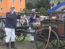 Die Handdruckspritze wird heute bei Festumzügen, Schauübungen, Oldtimertreffen und anderen Gelegenheiten genutzt.