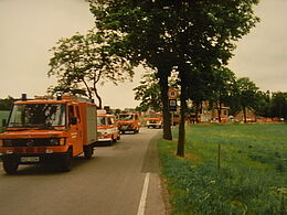 Vornweg die alte Spritze und der B1000 und dahinter das neue Einsatzfahrzeug.