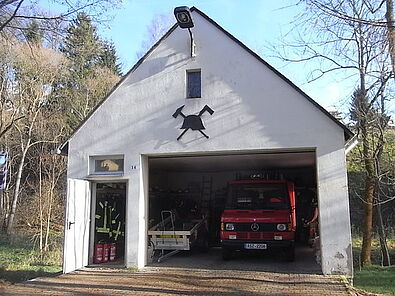 Das Gerätehaus wurde 1958 erbaut und bietet Platz für die Technik und Einsatzbekleidung.