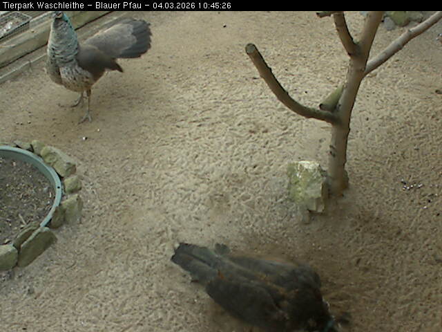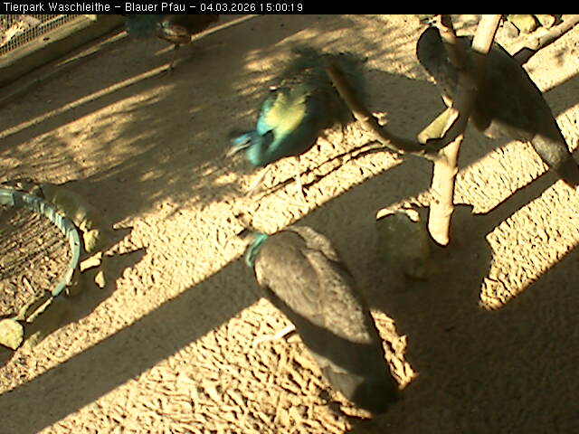Das Weibchen hat ein stumpfes, gesprenkeltes, braunes Gefieder, das eine gute Tarnung im Wald-, Busch- und Moorland bietet. Der wilde Pfau lebt in hügeligen Waldgebieten in Wassernähe. Seine Ursprüngliche Heimat ist Indien. Heute ist er in Zuchtform überall verbreitet.