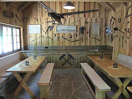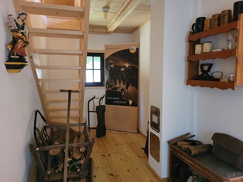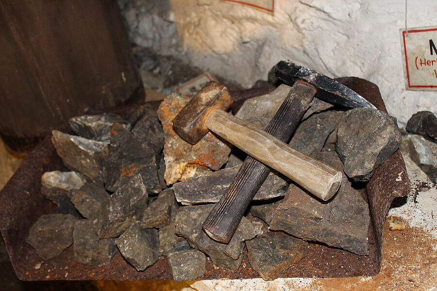 Für den Bergwerksbetrieb in früherer Zeit war die Bergschmiede von großer Wichtigkeit. Das stumpfe oder beschädigte Werkzeug (Gezähe) der Bergleute wurde in der Bergschmiede vom Bergschmied ausgeschmiedet, geschärft und repariert. Überall im Raum erinnert historisches Arbeitsgerät an diese Zeit.