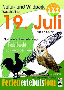 Am 19. Juli 2023, 10.00 Uhr und 14.00 Uhr sind Ferienkinder, Geschwisterkinder, Eltern und Großeltern zur Ferienerlebnistour herzlich eingeladen. Als „Naturdetektive unterwegs“ beobachten wir gemeinsam Tiere und erkunden die Lebensräume und Eigenheiten der Tierparkbewohner. Uns erwarten zwei spannende Stunden in der Natur, hautnah bei unseren Tieren und ihrem Nachwuchs. Mit Fernrohr und Lupen ausgestattet, wollen wir diesmal Federn und die dazugehörigen Vögel finden. Wir freuen uns auf viele interessierte kleine und große Tier- und Naturfreunde!